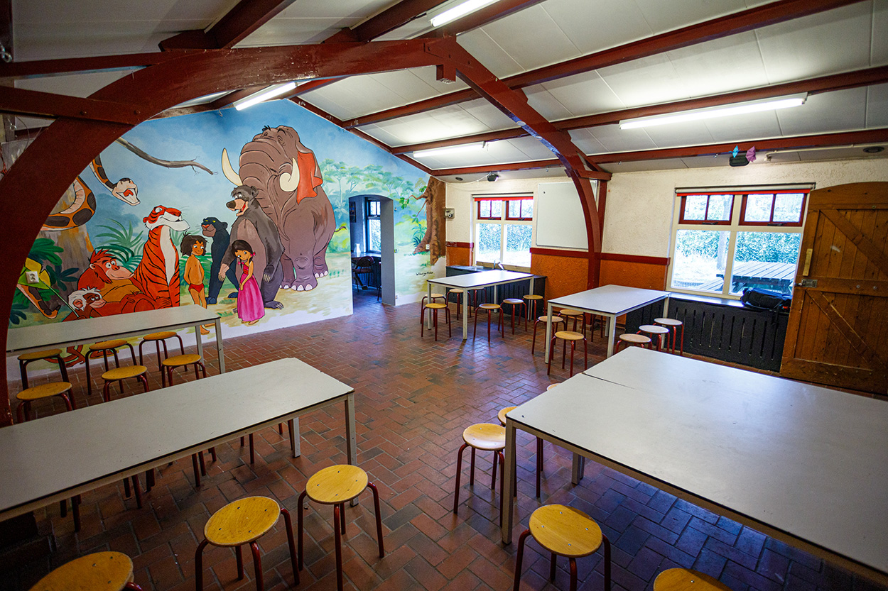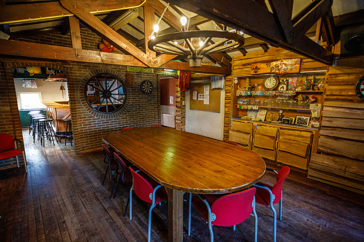 Binnen hebben we verschillende ruimtes die ideaal zijn voor spel, creatieve activiteiten, uitlegmomenten en groepsbijeenkomsten. Er is een keuken waar we samen kunnen koken tijdens speciale avonden of kampen, en een grote ruimte waar we kunnen spelen, leren en plannen. Ook hebben we een deel van het gebouw dat gebruikt wordt voor bijeenkomsten van onze oudere groepen zoals Explorers en de Stam.